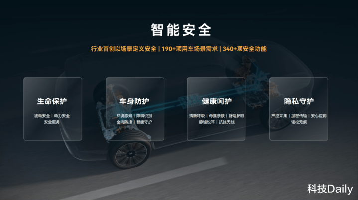 而且,问界正在将这种对未来智慧出行的深刻理解,依靠“新豪华”理念,转化为扎实的产品实力。在辅助驾驶领域,问界M9深度融合华为乾崑智驾ADS 4辅助驾驶系统,配备32个高精度传感器与4颗激光雷达,构成全天候、全场景的感知能力。截至目前,该系统已累计避免31.3万次潜在碰撞,为智能出行构筑坚实的安全基石。 辅助驾驶实力全面进化的同时,智能座舱的交互革新也构成了问界M9出行体验升级的另一个基础。全车搭载HarmonyOS 4操作系统,能够轻松实现三指四向五屏多人多屏多设备交互,构建起覆盖驾驶、娱乐、工作的全场景需求。加上升级的鸿蒙新桌面、小艺智慧助手等,重新定义人机交互,为用户带来颠覆性的座舱体验。 可靠的辅助驾驶生态、便捷的智能座舱交互,配合屏幕上循环播放的真实用车场景,可以说,问界M9展台为到场观众生动呈现了一场生动、可触的“未来出行的生活剧场”。由此,问界M9也以独特的"智慧重塑豪华"理念,再次证明了智能科技的终极价值,应该在于让复杂的科技变得简单易用,让前沿的创新成果惠及更多人。 问界M9以领先的产品力为用户打造豪华用车体验,也获得了市场认可和用户喜爱。车辆上市21个月累计交付突破25万辆,创下50万元级车型的交付新纪录,持续引领中国品牌在高端新能源市场的突破与价值重塑。 安全不止一个维度,而是全维智能安全 从顶级展台数智体验,到真实出行场景,问界M9清晰地勾勒出未来出行的发展方向,同时它也以秉承的“安全是最大的豪华"理念,为当前的智能安全出行注入全新思考。 在过去单一安全领域跃迁至数智时代“智慧安全”领域的背景下,企业该如何将安全自始至终地贯彻?答案是——场景化,也就是赛力斯提出的“以场景定义安全”的理念,并基于此首创赛力斯智能安全体系。这套体系已开发完成340+安全功能,覆盖190+安全场景,为用户提供涵盖“生命保护”“车身防护”“健康呵护”“隐私守护”四大安全领域的安全保障,全方位保护人、车、物的安全。